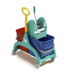 Nick kétvödrös felmosókocsi, műanyag oldaltolóval. Zöld színben. 30 literes. Mérete: 73x43x94 cm.